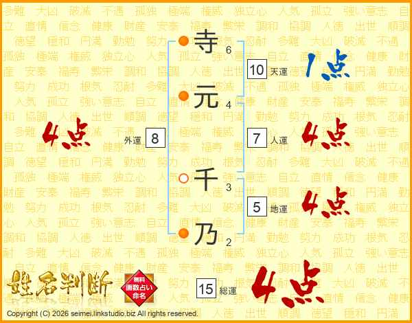 寺元千乃さんの総運は15画の4点!