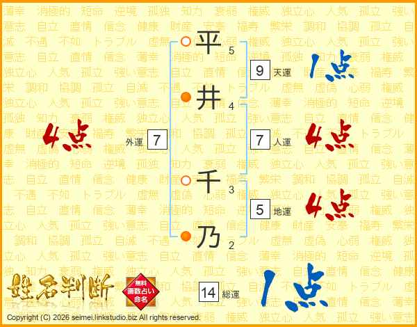 平井千乃さんの総運は14画の1点!