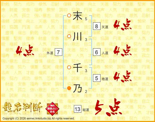 末川千乃さんの総運は13画の5点!