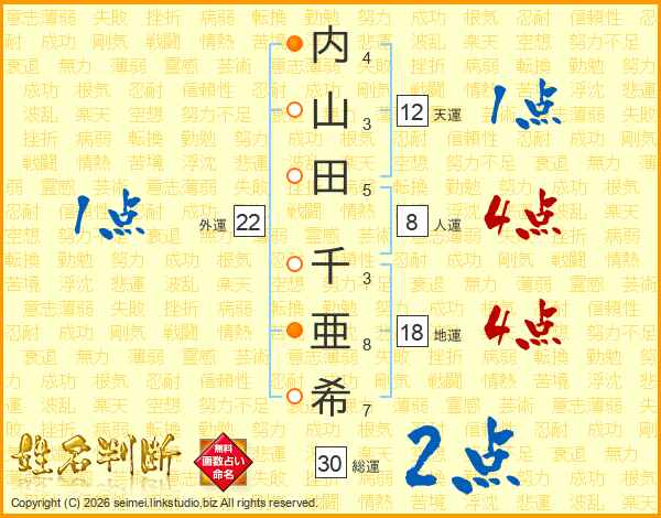 内山田千亜希さんの総運は30画の2点!