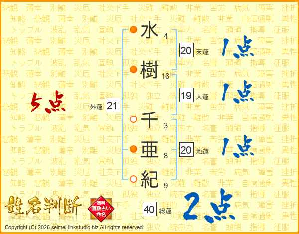 水樹千亜紀さんの外運は21画の5点!