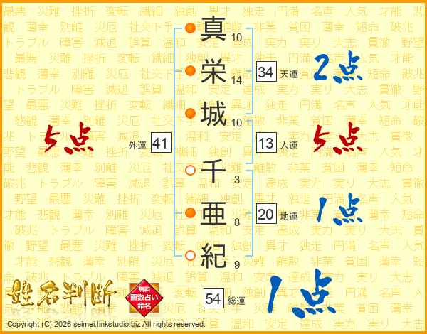 真栄城千亜紀さんの総運は54画の1点!