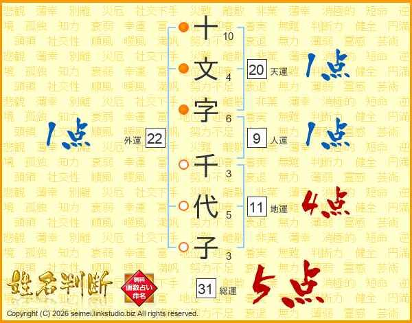 十文字千代子さんの総運は31画の5点!