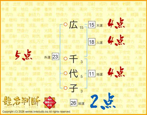 広千代子さんの総運は26画の2点!