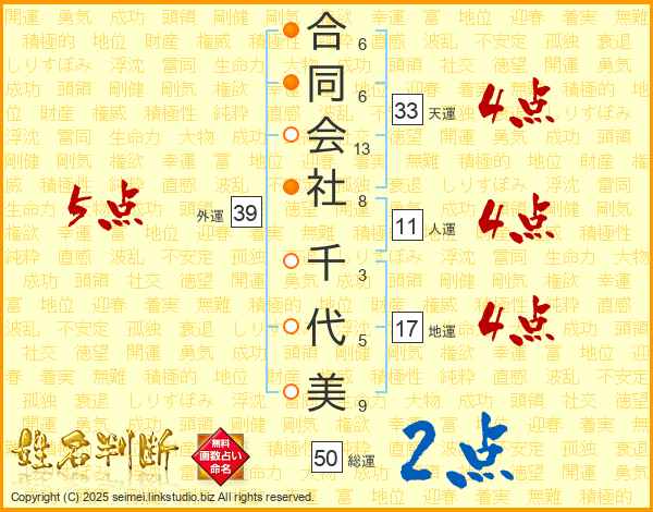 合同会社千代美さんの天運は33画の4点!