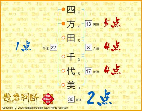 四(4画)方(4画)田(5画) 千(3画)代(5画)美(9画)