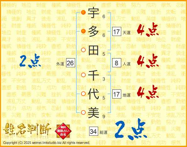 宇多田千代美さんの総運は34画の2点!