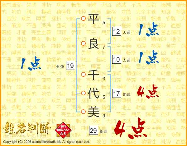 平良千代美さんの総運は29画の4点!