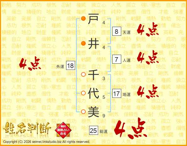 戸(4画)井(4画) 千(3画)代(5画)美(9画)