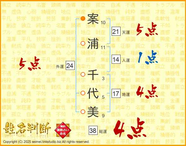 案浦千代美さんの外運は24画の5点!