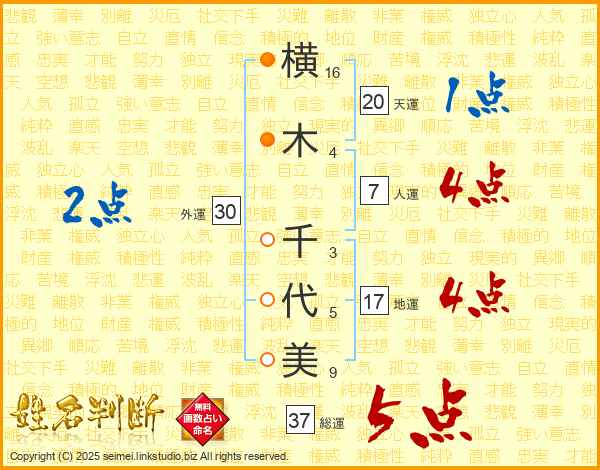 横木千代美さんの総運は37画の5点!