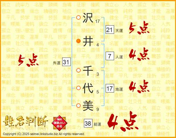 沢井千代美さんの総運は38画の4点!