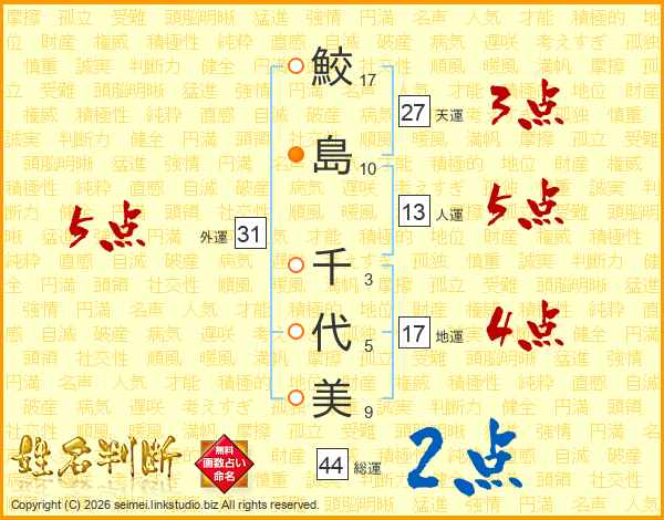 鮫島千代美さんの総運は44画の2点!