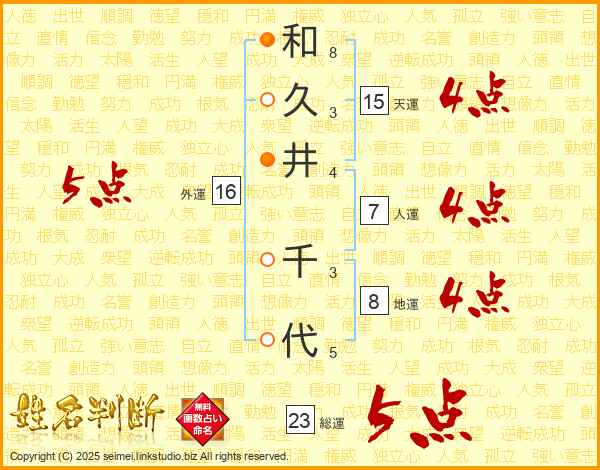 和久井千代さんの総運は23画の5点!