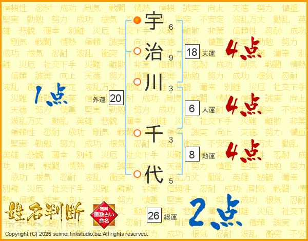 宇治川千代さんの天運は18画の4点!