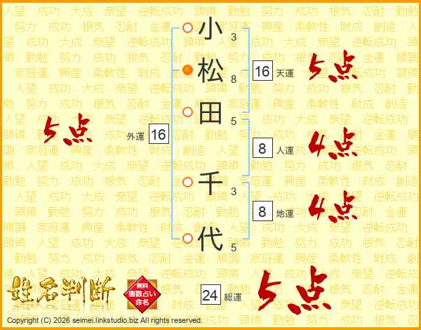 小(3画)松(8画)田(5画) 千(3画)代(5画)