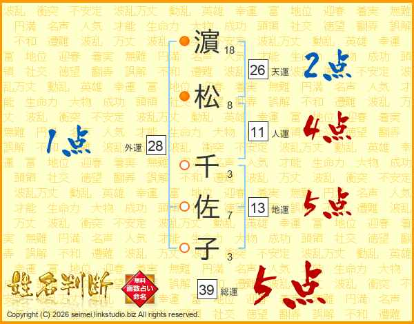 濵(18画)松(8画) 千(3画)佐(7画)子(3画)