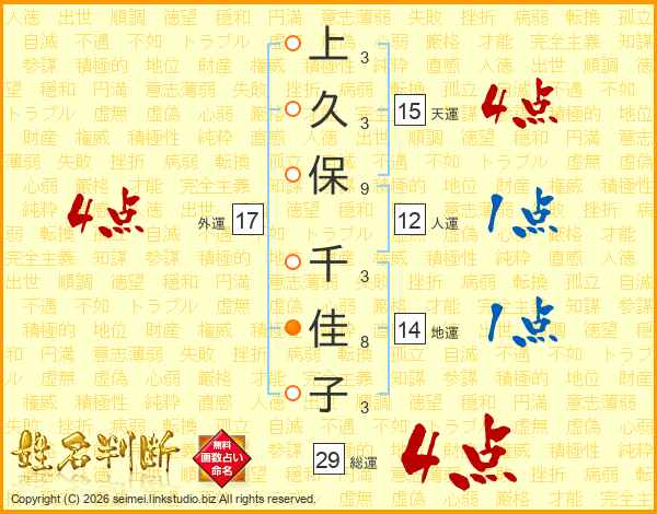 上久保千佳子さんの総運は29画の4点!