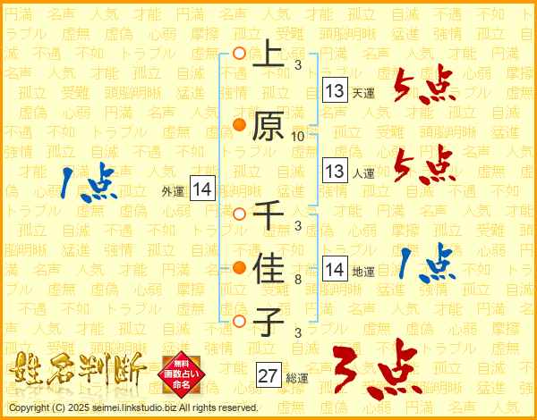上(3画)原(10画) 千(3画)佳(8画)子(3画)