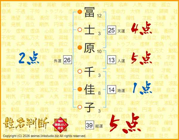 冨士原千佳子さんの総運は39画の5点!