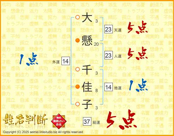大(3画)懸(20画) 千(3画)佳(8画)子(3画)