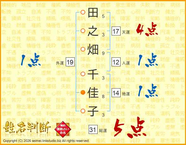 田之畑千佳子さんの総運は31画の5点!