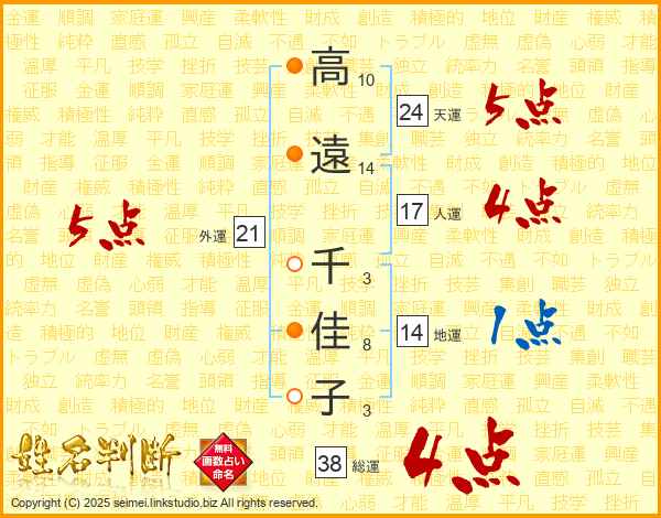 高遠千佳子さんの総運は38画の4点