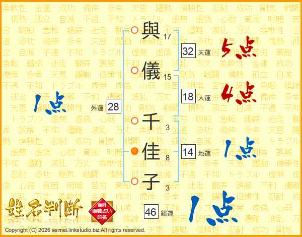與儀千佳子さんの総運は46画の1点!