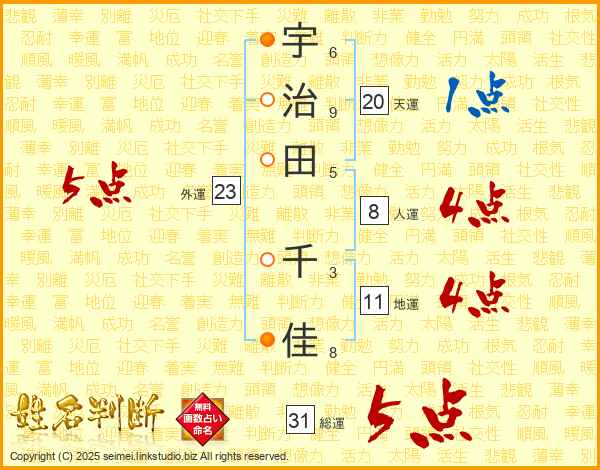 宇治田千佳さんの総運は31画の5点!