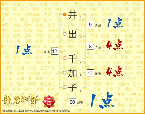 井(4画)出(5画) 千(3画)加(5画)子(3画)