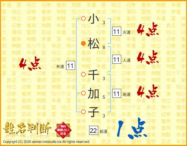 小(3画)松(8画) 千(3画)加(5画)子(3画)