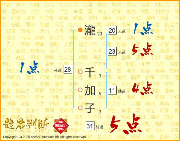 瀧千加子さんの総運は31画の5点!