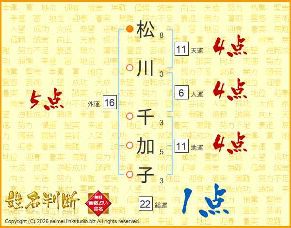 松川千加子さんの地運は11画の4点!