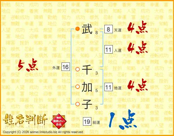 武(8画) 千(3画)加(5画)子(3画)