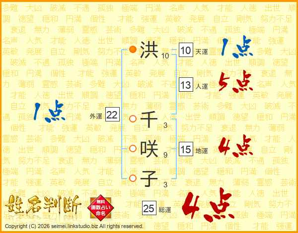 洪千咲子さんの総運は25画の4点!