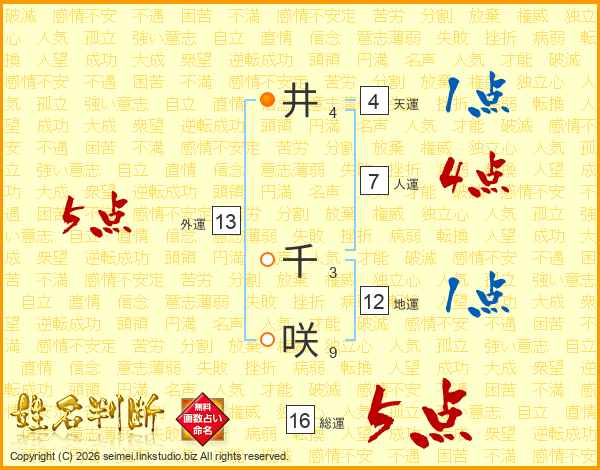 井(4画) 千(3画)咲(9画)
