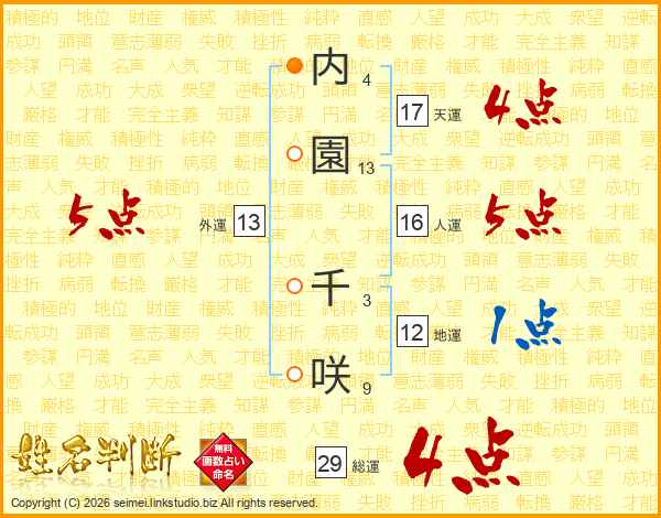 内園千咲さんの天運は17画の4点!