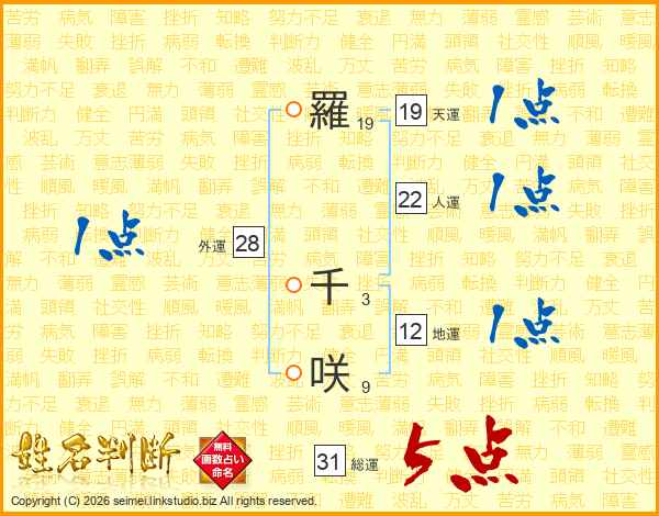 羅千咲さんの総運は31画の5点!