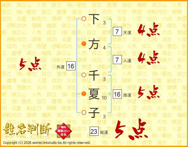 下(3画)方(4画) 千(3画)夏(10画)子(3画)
