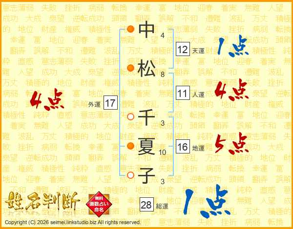 中松千夏子さんの人運は11画の4点!