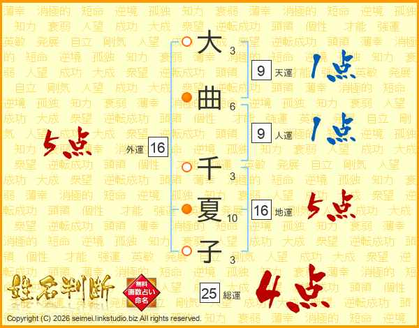大曲千夏子さんの総運は25画の4点!