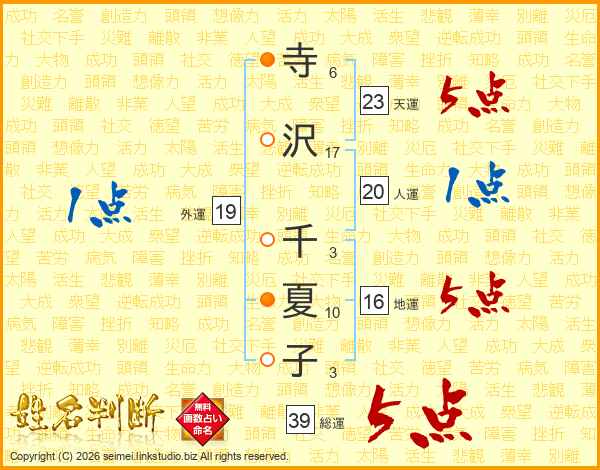 寺沢千夏子さんの天運は23画の5点!