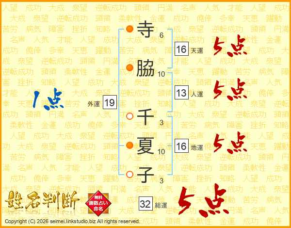 寺脇千夏子さんの総運は32画の5点!