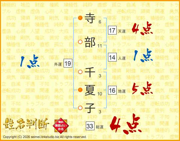 寺部千夏子さんの天運は17画の4点!
