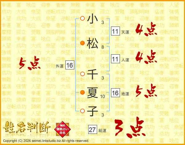 小(3画)松(8画) 千(3画)夏(10画)子(3画)