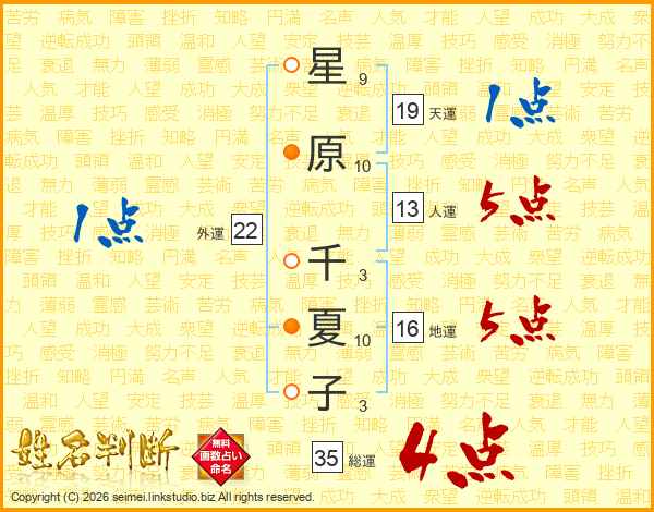 星原千夏子さんの総運は35画の4点!