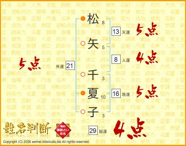 松矢千夏子さんの外運は21画の5点!