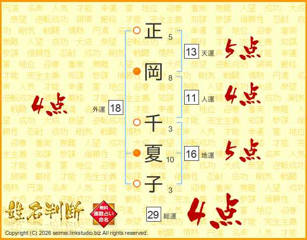 正岡千夏子さんの総運は29画の4点!