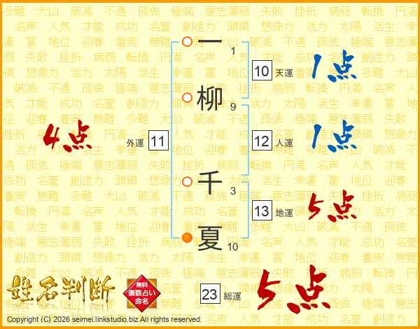 一柳千夏さんの外運は11画の4点!