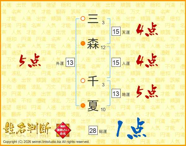 三森千夏さんの外運は13画の5点!